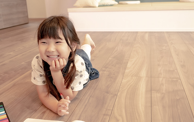 アレル物質やウイルスの働きを低減する抗菌仕様の壁や床。
